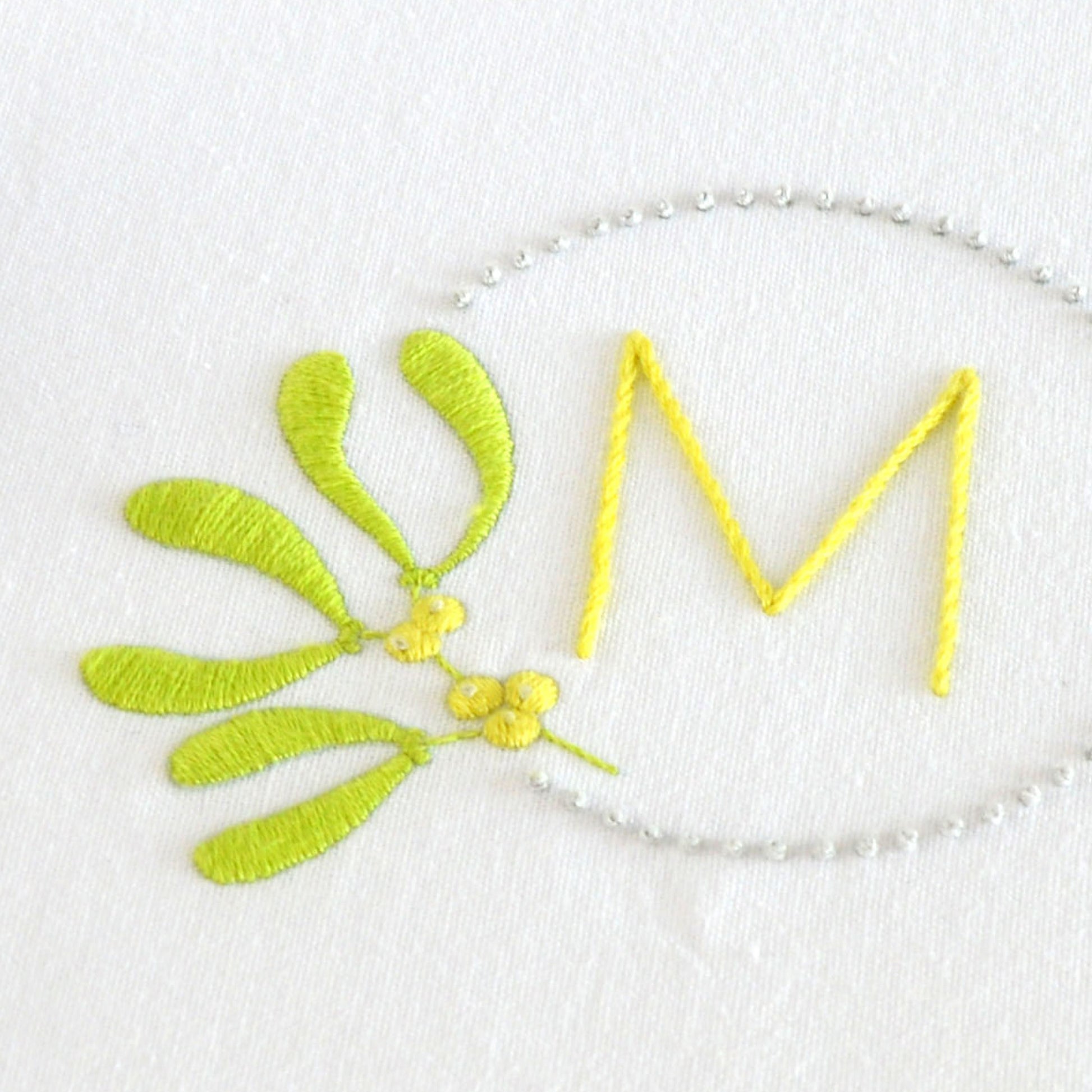 These festive monograms draw on nature for the holidays. With sprigs of pine, holly leaves and mistletoe. They’re light and delicate, with some lovely stitch detailing. An elegant way to personalise Christmas.