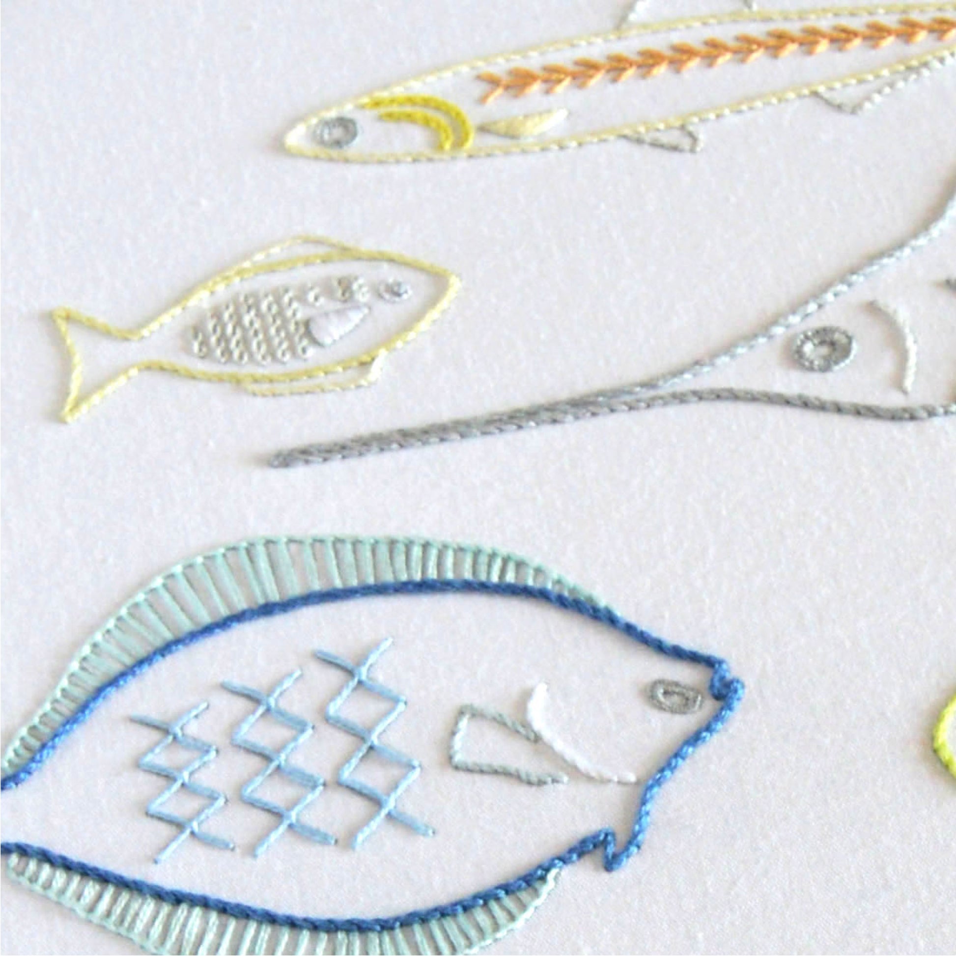 Scales are always fun to embroider and you’ll use a different stitch for each of the fish in this pattern. The fins and tails are really striking, too. There are eight lifelike fish – based on the likes of tuna, swordfish, turbot and plaice – that you can embroider as is or split up into individual designs. Ideal for coastal and country homes, and those who love fishing.
