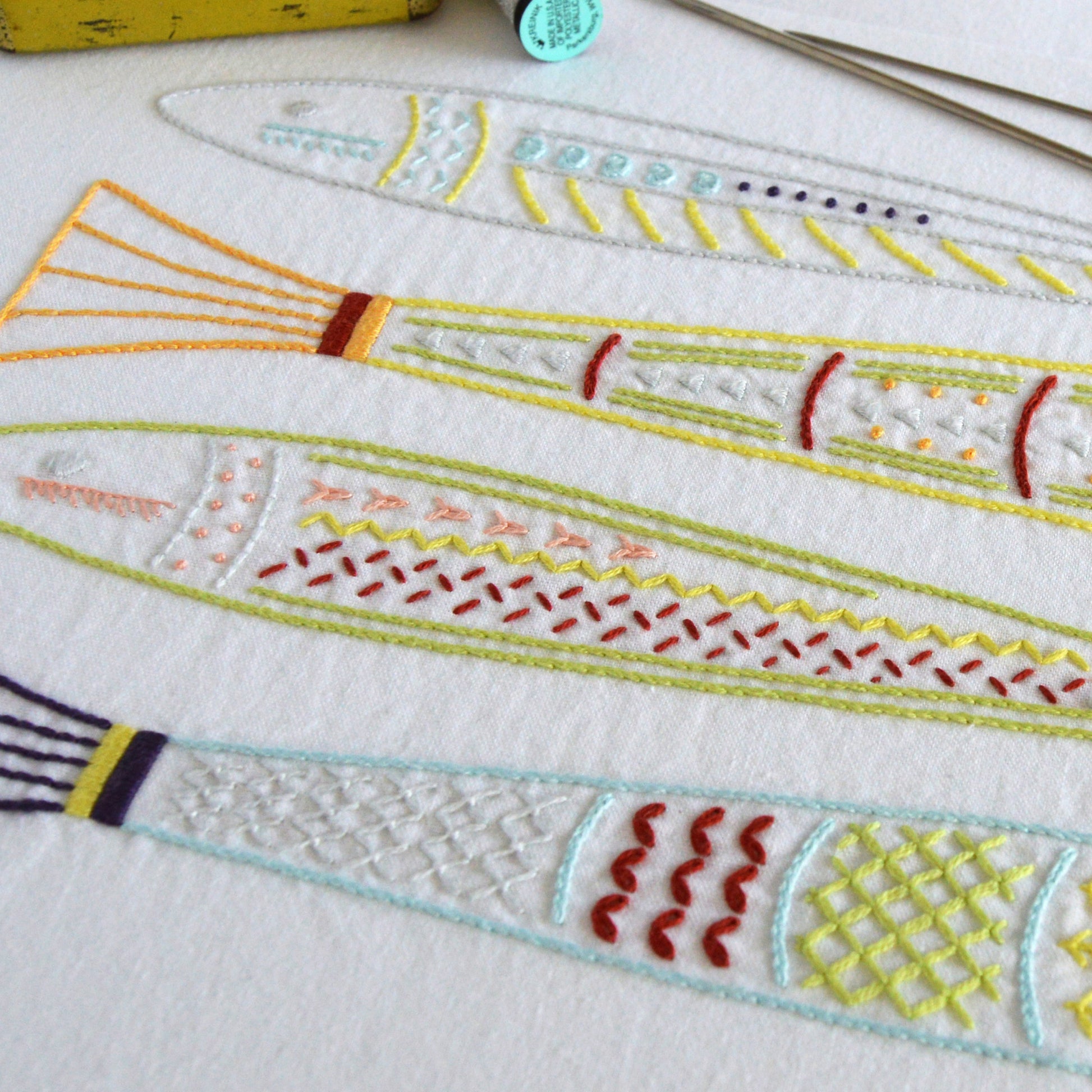 The fish in this pattern are full of fantastic embroidery stitches, from zigzag back to seeding to fly stitch filling. They’re also lovely and colourful. So, really fun to embroider. Whether you stitch them as is, or split them up into solo swimmers or pairs. Whatever suits your project.